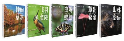 “极美钟山·生态篇”共有5册,包括《钟山草木》《飞羽金陵》《虫鸣蝶舞》《蕈出紫金》《山林密语》,系统梳理南京紫金山的生物多样性资源,通过图文并茂的呈现形式、合理的分类与专业的笔触,对紫金山的植物、鸟类、昆虫、菌类及哺乳、水生、两爬等典型物种和生态资源进行生动解读,深入剖析这些生物的习性、特点和生态价值。如《钟山草木》以四季为时间轴线,跟随季节的脚步,细数钟山具有代表性的植物,阐述植物背后的故事,诠释其中的意趣。全书分为春、夏、秋、冬4个篇章,共28篇植物科普散文。