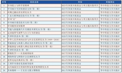 近年来,华中科技大学出版社共23个项目获得国家出版基金资助。该社秉承“超越传统出版,影响未来文化”的核心战略,围绕国家重大战略布局,服务科技发展需求,发挥学科资源优势,深耕学术出版,力争在新时代出版高质量发展中实现新的突破。