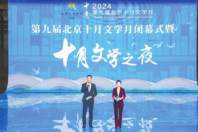 中国出版传媒商报讯 10月13日晚,由北京市委宣传部、北京市委网信办、北京市文联、北京市西城区委区政府主办,北京出版集团主承办的第九届北京十月文学月闭幕式暨“十月文学之夜”在北京人民剧场举办。中国作协党组书记、副主席张宏森,中宣部文艺局局长陈名杰、版权局二级巡视员赵杰,北京市政协党组成员、市文联主席韩子荣,北京市政协原副主席、北京市社科联主席牛青山,中国版权协会理事长阎晓宏等出席活动。北京市委宣传部副部长、首都文明办主任滕盛萍,市纪委市监委驻市委宣传部纪检监察组组长李固,市委宣传部一级巡视员徐和建,市委宣传部副部长何平,北京出版集团党委书记、董事长张爱军,党委副书记、董事、总经理吴文学等主承办单位负责同志出席。