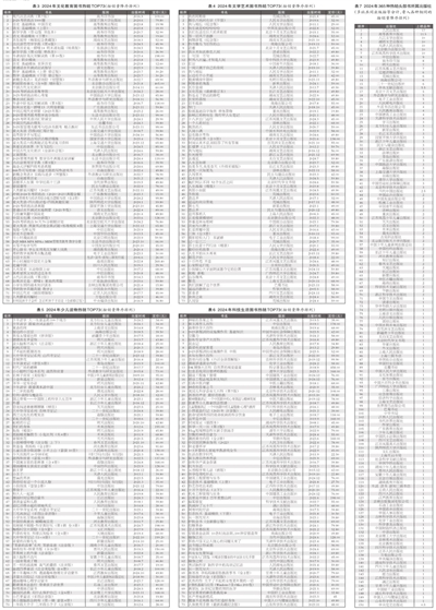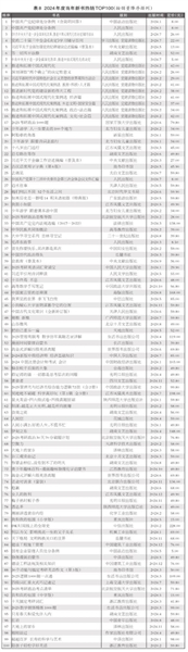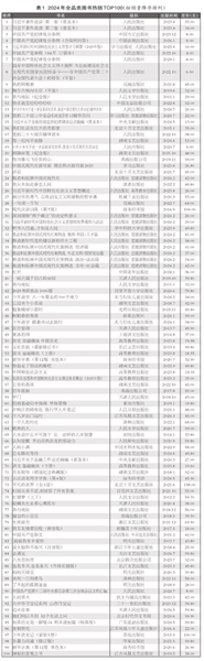 2024年新书市场表现抢眼,当年新书热销TOP100(见表8)中,29个品种晋入年度全品类图书热销TOP100,比上年增加1种,占比近3成。