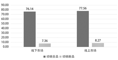 2024年,图书零售线下市场动销图书76.14万种(见图9),同比下降6.16%。其中,当年出版上市的新书动销73582种,同比下降14.60%;新书动销率为73.09%,同比下降3.51个百分点;新书的市场贡献率为15.36%,同比下降5.90个百分点。