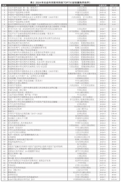 热销主题时政图书前列品种包揽全品类图书热销TOP8,销量均在7位数区间。相关图书主要分为五类:一是习近平总书记著述,既有《习近平著作选读》(人民出版社)等综合性著作,又有《习近平关于金融工作论述摘编》(中央文献出版社)等专题论著。二是党纪学习教育相关读物,其中《中国共产党纪律处分条例》就有中国方正出版社、中国法治出版社、人民出版社的3个版本。三是《党的二十届三中全会〈决定〉学习辅导百问》(学习出版社、党建读物出版社)等二十届三中全会文献及相关读物。四是《推进和拓展中国式现代化》(人民出版社、党建读物出版社)等9种全国干部学习培训读物。五是近年来持续热销的《中国共产党章程》(人民出版社)等党的二十大文献及相关读物、《中国共产党简史》(人民出版社、中共党史出版社)等党史学习教育相关读物、《习近平新时代中国特色社会主义思想学习纲要》(人民出版社、学习出版社)等主题教育相关读物。