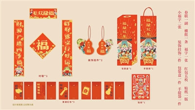 礼盒产品:春联、横批、福字、红包、贴纸、装饰挂饰、包装盒、手提袋