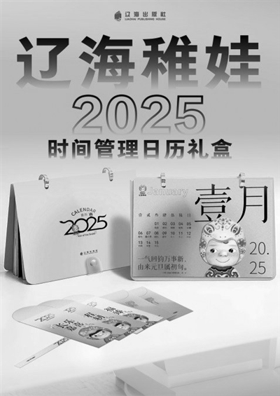 辽海出版社一直有推出新年日历的传统,2024年是第2次推出新年日历礼盒。面向2025年,我们创新设计了“辽海稚娃”2025时间管理日历礼盒。礼盒设计灵感源自东北丰富的文化和艺术传统。在青年插画师庞渤洋手绘的生肖稚娃基础上,由青年设计师小书进行产品设计和艺术排版,将生肖龙娃的形象与辽海出版社的元素相结合,打造既具有观赏价值又富有实用功能的文创产品。礼盒包含24张半月历、53张时间管理周历,并有活页日历外壳、6枚精美新年开运红包等,不仅提供了科学的时间管理工具,帮助读者高效规划日常生活和工作,而且每一张都绘有“辽海稚娃”的生动插画,展现东北文化的独特魅力。