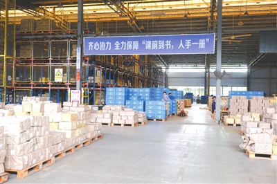 8月开始,教材发运工作进入高峰期。蓝海物流仓库内,热浪裹挟着油墨香扑面而来,工作人员发扬“五加二”精神,顶着近40摄氏度的高温,连续高强度作业,完成教材验收、入库和编目工作,每一本教材都经过严格核对,确保数量准确、质量合格。